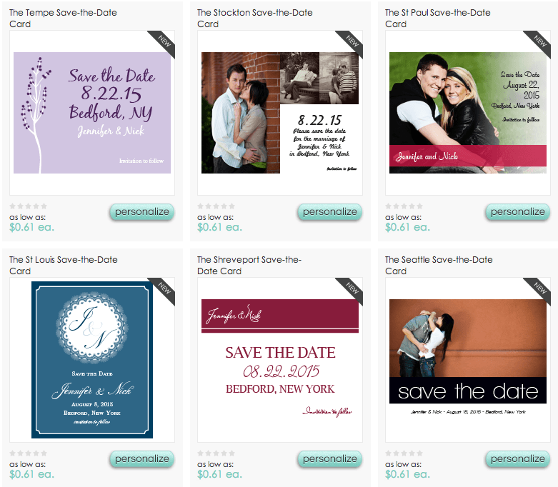 We now offer over 100 custom save the date cards! They are just as easy to customize as our invitations, and you can even get one that matches the layout of your invitation! The possibilities are endless with all of our color and font choices!