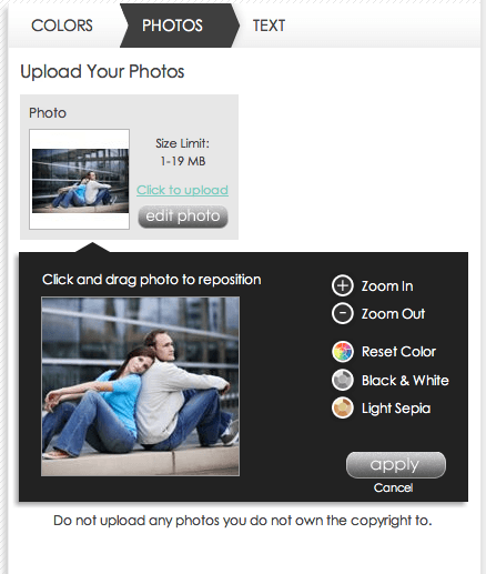 You now have the ability to crop, zoom in/out, and make your photos black & white or sepia tone. With these new tools you will be able to make each photo picture perfect and know exactly what your proof will look like!